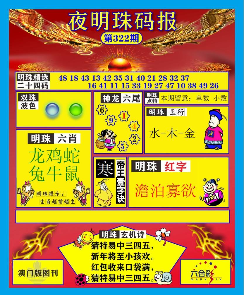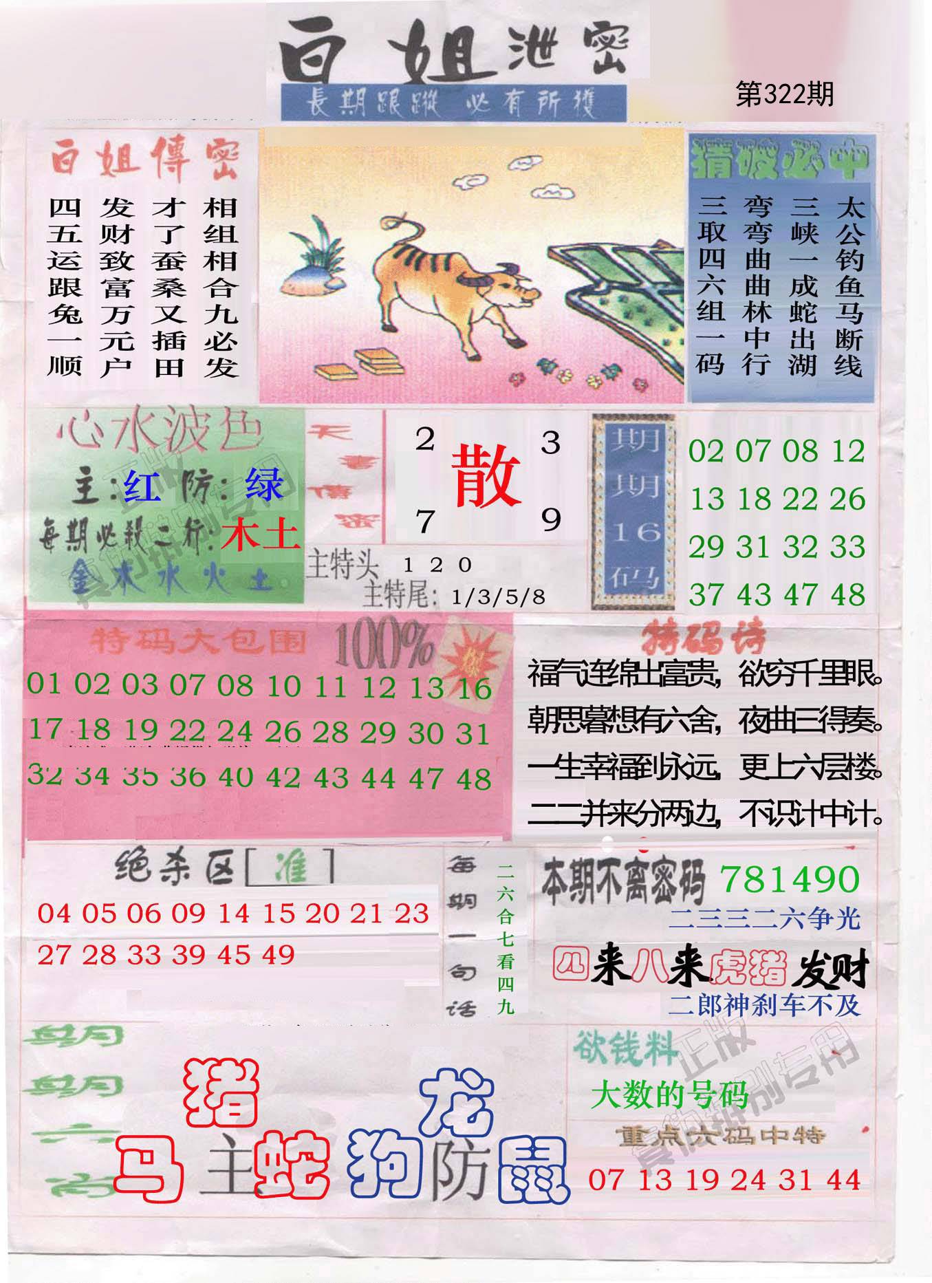 | 322期推荐五肖: 羊牛龙猪猴 ~~稳准狠 |
